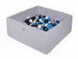 MeowBaby® kvadratni bazen z žogicami, 90x90x40 cm s 300 žogicami, bombaž, svetlo siva: bela/modra/črna/siva