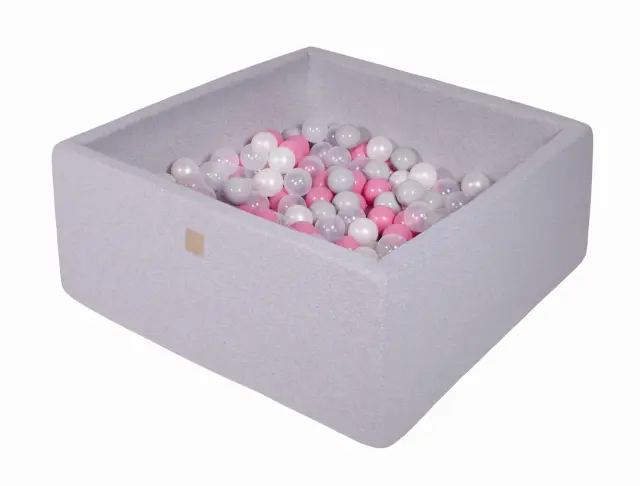 MeowBaby® kvadratni bazen z žogicami, 90x90x40 cm s 300 žogicami, bombaž, svetlo siva: svetlo roza/biserno bela/siva