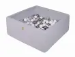 MeowBaby® kvadratni bazen z žogicami, 90x90x40 cm s 300 žogicami, bombaž, svetlo siva: bela/srebrna/siva