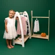 MeowBaby® Otroško stojalo za oblačila – obešalnik s polico, otroška garderoba iz naravnega lesa, Bela