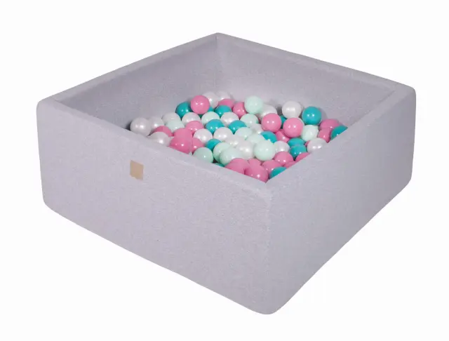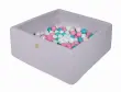 MeowBaby® Square Ball Pool, 90x90x40 cm s 300 žogicami, bombaž, svetlo siva: biserna/svetlo roza/turkizna/mint