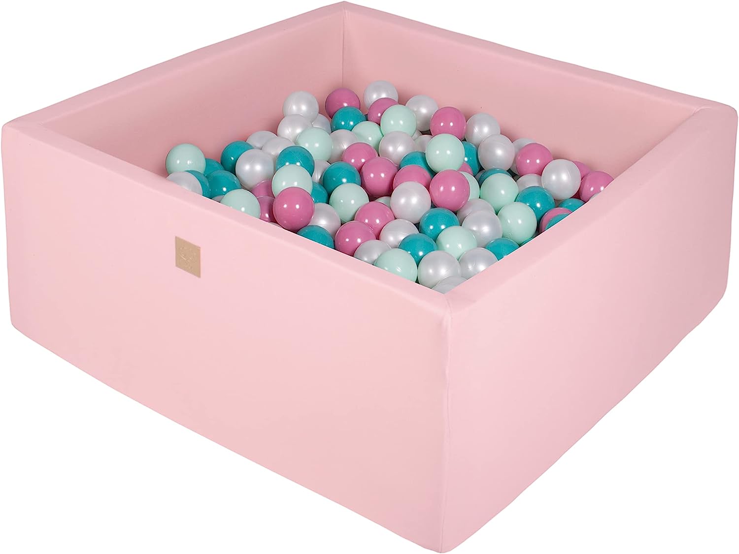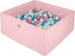 MeowBaby® Square Ball Pool, 90x90x40 cm s 300 žogami, bombaž, roza: biserna/turkizna/roza/mint
