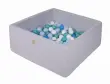 MeowBaby® Square Ball Pool, 90x90x40 cm z 200 žogami, bombaž, svetlo siva: bela/modra/turkizna/nebeško modra