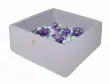 MeowBaby® Square Ball Pool, 90x90x40 cm z 200 žogicami, bombaž, svetlo siva: mint/prozorna/srebrna/vijolična
