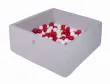MeowBaby® Square Ball Pool, 90x90x40 cm s 300 žogami, bombaž, svetlo siva: rdeča/bela