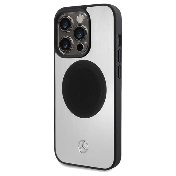 MERCEDES USNJEN&ALU OVITEK ZA MAGSAFE OVITEK ZA IPHONE 15 PRO MAX SREBRN
