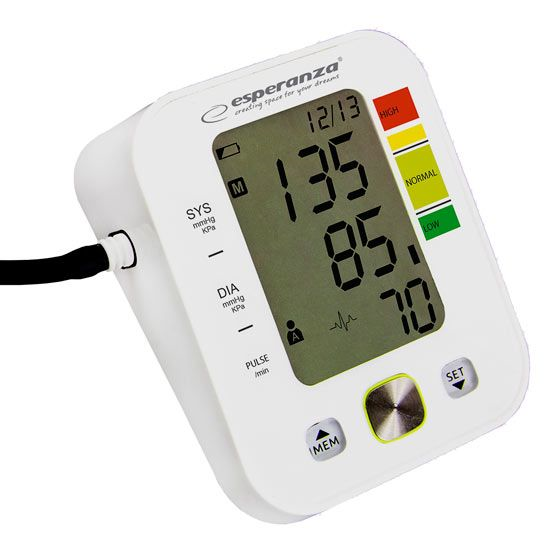 Merilec krvnega tlaka in pulza ESPERANZA VERVE, nadlaktni, velik LCD, bele barve