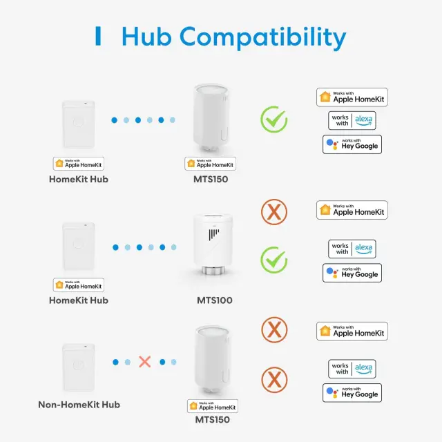 Se bojite zapletene konfiguracije naprave? Nepotrebno! Termostat je izjemno enostaven in hiter za namestitev, zaradi priloženih adapterjev pa ga odlikuje široka združljivost. Za napajanje zadostujeta 2 bateriji AA (nista vključeni). Želite več? Pametno vozlišče, ki ga najdete v paketu, lahko upravlja do 16 termostatov. Možnosti so torej res velike! Želite daljinsko upravljati naprave, ki ste jih konfigurirali v aplikaciji Apple Home? Preprosto nastavite HomePod, Apple TV ali iPad, ki ga želite uporabljati kot domače vozlišče.