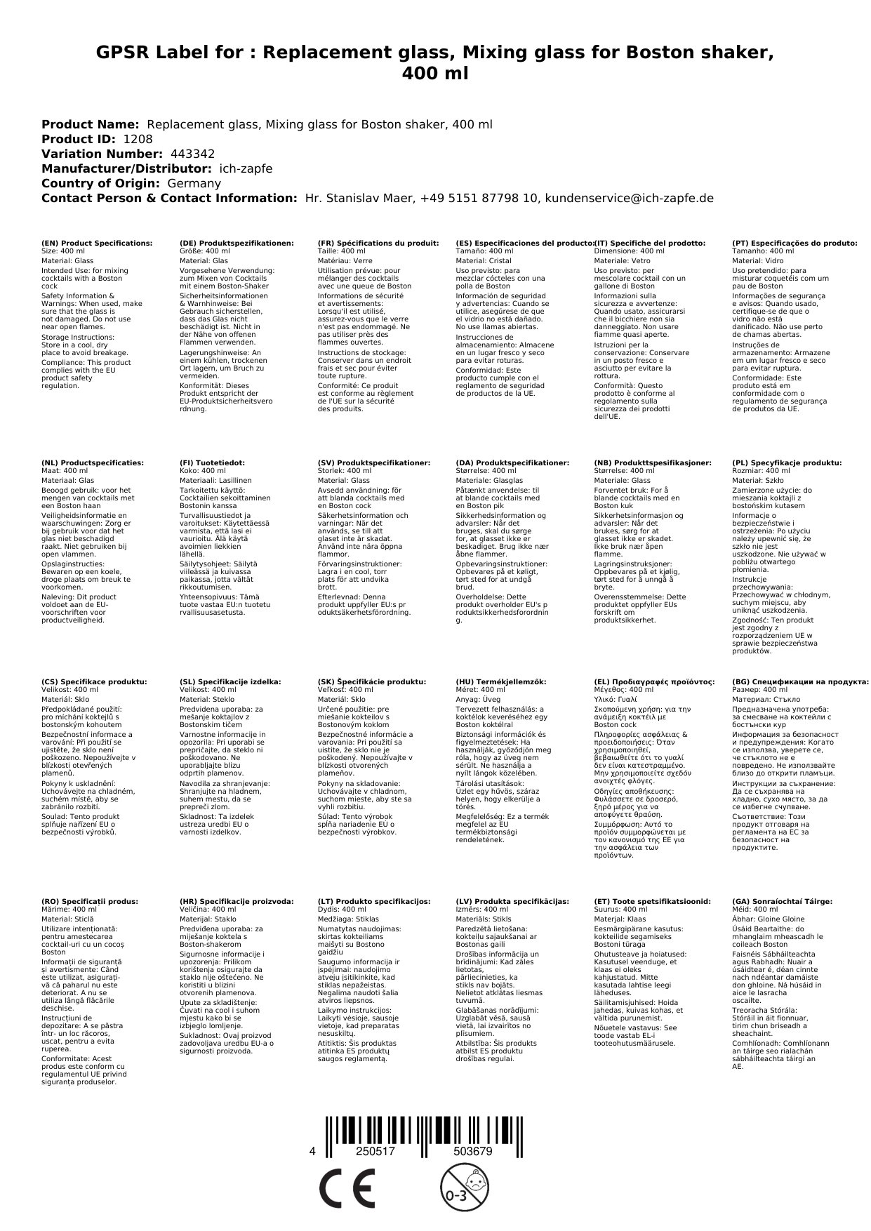 Ersatzglas za mešalno steklo Boston Shaker 400 ml je nujna oprema za vsak bart, ki stremi k popolnosti. Ta visokokakovostni nadomestni kozarec je zasnovan za intenzivno uporabo v profesionalnih okoljih.