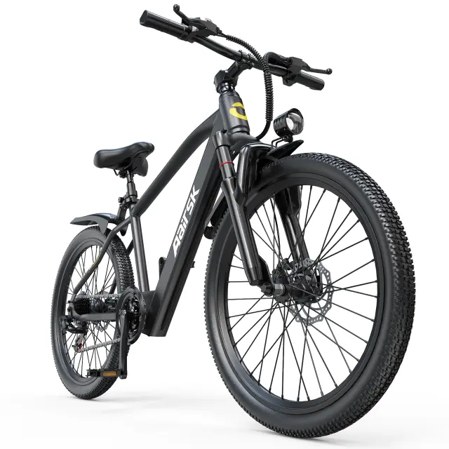 Številka modela: GT300Vrsta kolesa: Gorsko/mestno električno koloMaterial okvirja: Visoko trdno ogljikovo jekloVrsta motorja: 250W brezkrtačni motor na zadnjem pestuPoložaj motorja: Zadnji motorBaterija: 36V 10AH litijeva baterija (skrita v okvirju)Zaslon: LCD zaslonPrestavni sistem: Shimano 7-stopenjskiNavor: 45 NmVzmetenje: Sprednje viliceZavorni sistem: Kolutne zavore (spredaj in zadaj)Velikost koles: 26''* 1,95" pnevmatikaNajvečja hitrost: 25 km/hDoseg na polnjenje: 30–55 kmČas polnjenja: 5–6 urPosebnost: Vodoodporna zasnovaNapajanje: Litijeva baterijaPoložaj baterije: Integrirana/skrita v okvirjuPriporočena višina: 152–180 cmTeža kolesa: 26,6 kgNajvečja nosilnost: 150 kgSkupna dolžina: 150 cmVišina krmila (od tal): 110 cmVišina sedeža (nastavljiva): 84–96 cm