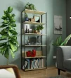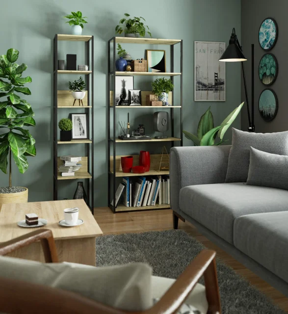 Metalna loft polica je praktičen in moden kos pohištva, ki se bo dobro podal tako v dnevni sobi kot v pisarni. Polica ima črn kovinski okvir in 6 polic v barvi Artisan Oak. Police so izdelane iz laminirane plošče debeline 16 mm. To je trden in vzdržljiv material, ki se odlikuje po visoki odpornosti na obrabo. Robovi so dodatno zaščiteni z ABS robom, kar zagotavlja, da bo pohištvo vedno izgledalo dobro, tudi pri zelo intenzivni vsakodnevni uporabi. Polica je opremljena s 6 policami, kjer lahko postavite predmete, ki jih želite prikazati ali jih preprosto imeti pri roki. Celota izgleda zelo stilno in moderno.