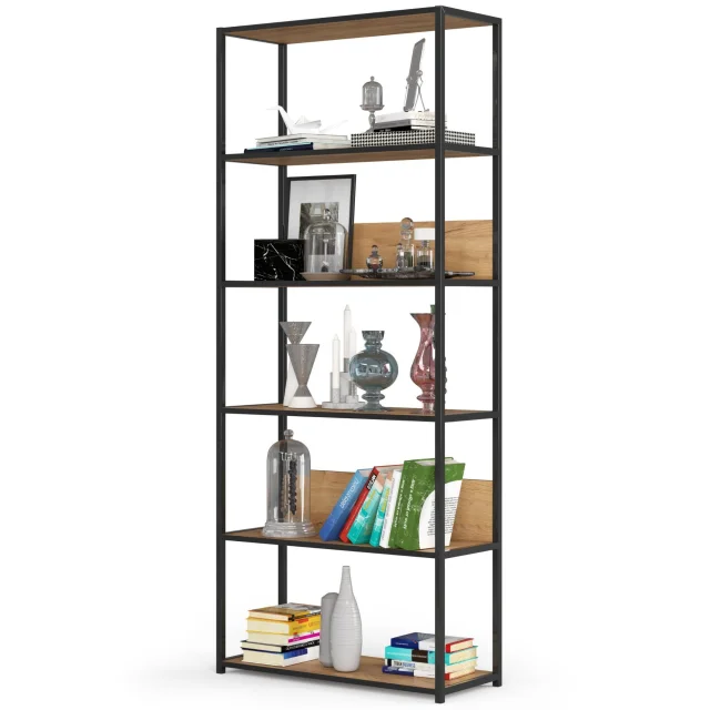 Metalna loft polica je praktičen in moden kos pohištva, ki se bo dobro podal tako v dnevni sobi kot v pisarni. Polica ima črn kovinski okvir in 6 polic v barvi craft hrasta. Police so izdelane iz laminirane plošče debeline 16 mm. To je trden in robusten material, ki se odlikuje po visoki odpornosti na obrabo. Robovi so dodatno zaščiteni z ABS oblogo, kar zagotavlja, da bo pohištvo vedno izgledalo dobro, tudi pri zelo intenzivni vsakodnevni uporabi. Polica je opremljena s 6 policami, kjer lahko postavite predmete, ki jih želite prikazati ali jih preprosto imeti pri roki. Celota izgleda zelo stilno in moderno.