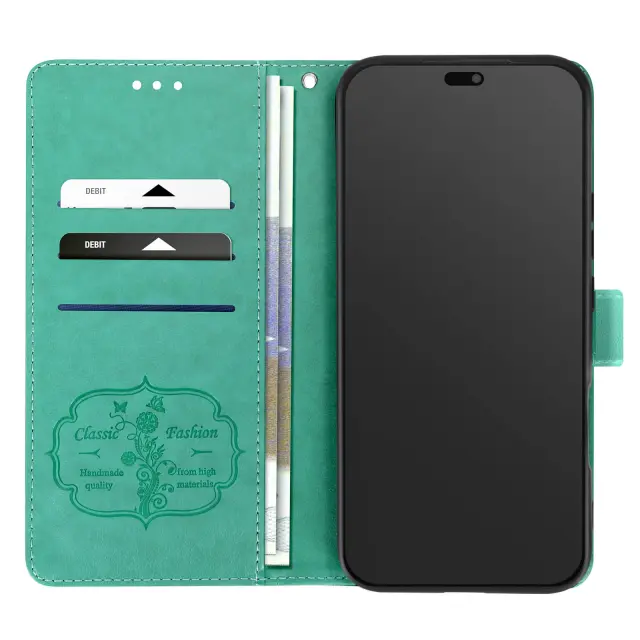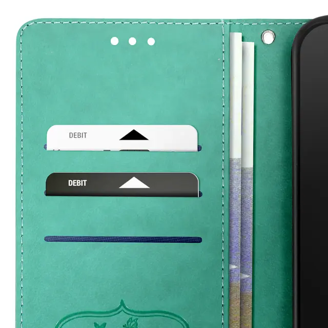 Ohišje z zelenim metuljevim cvetom, posebej zasnovano za zaščito in okrasitev telefona Honor 400 Lite. Vzorčast ovitek iz usnja doda edinstven in eleganten pridih telefonu. S tremi režami za kartice in stranskim žepom, v katerem boste imeli vse potrebno vedno pri roki.. Vgrajena podporna funkcija za udobno gledanje večpredstavnostnih vsebin.