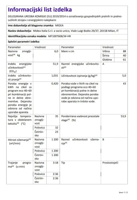 Ponderirana poraba energije [na 100 ciklusov, program eco 40−60] (kWh)