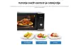 5. Zaslon in upravljanje: Na sprednji strani pečice se nahaja pregleden LED zaslon, ki omogoča enostavno spremljanje časa in izbire programov. Pečico lahko upravljate preko mehanskih tipk, ki so intuitivne in enostavne za uporabo.