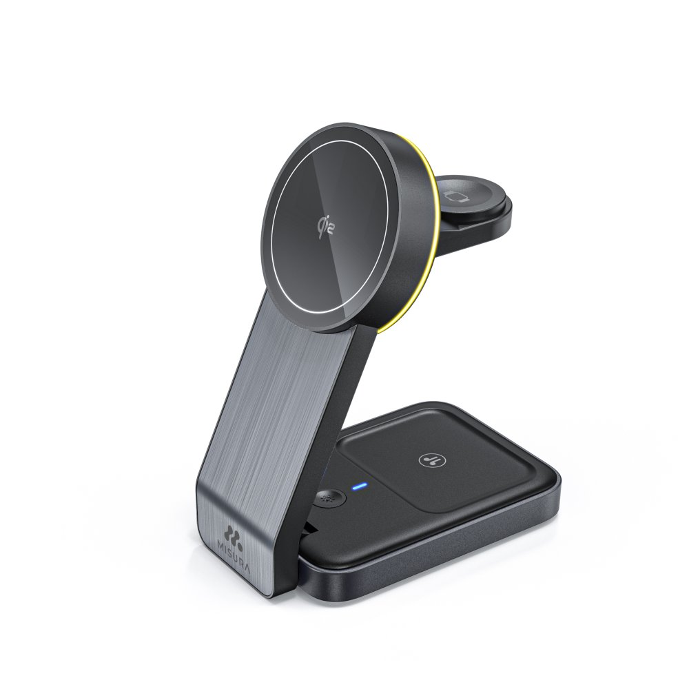 MH10 3-v-1 Zložljiva Brezžična Polnilna Postaja - BLACK