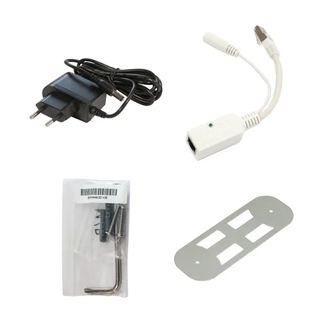 1x RB-FTC11 pretvornik, 1x Napajalnik (24V 0.2A), 1x Pribor za montažo, 1x Gigabit PoE injektor, 1x Navodila za uporabo