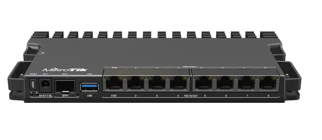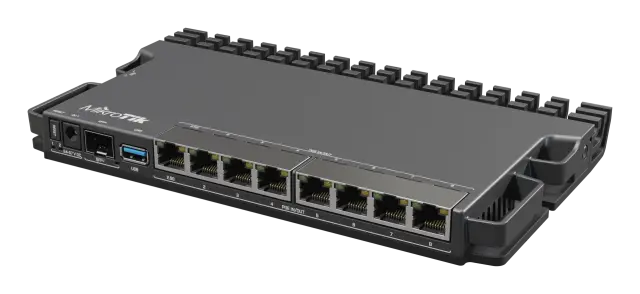 Ta različica RB5009 ima vse prednosti prejšnjega modela: Gigabit Ethernet, 2,5 Gigabit Ethernet in kletko 10 Gigabit SFP+ za optično povezljivost.