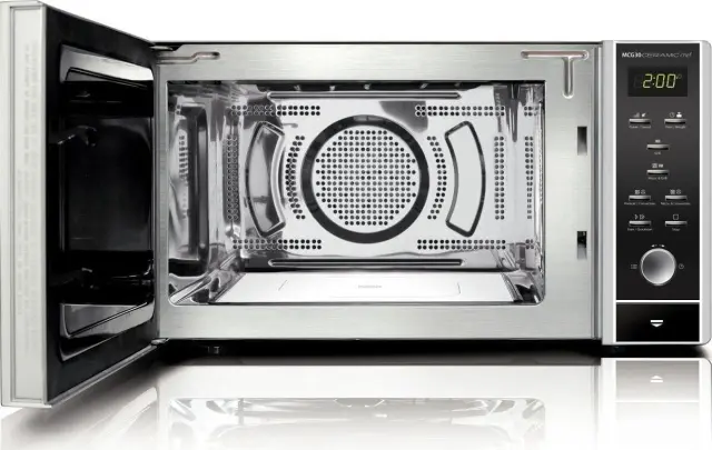 MCG 30 Ceramic Chef navdušuje z ravnim borosilikatnim steklenim dnom z mikrovalovnim reflektorjem, ki zagotavlja enakomerno porazdelitev mikrovalov. Hrana se segreva optimalno in enakomerno brez vrtljivega krožnika, kar poveča uporabno površino in omogoča uporabo večjih ter oglatih pekačev. Gladko stekleno dno je hkrati zelo enostavno za čiščenje, kar dodatno prispeva k udobni uporabi.