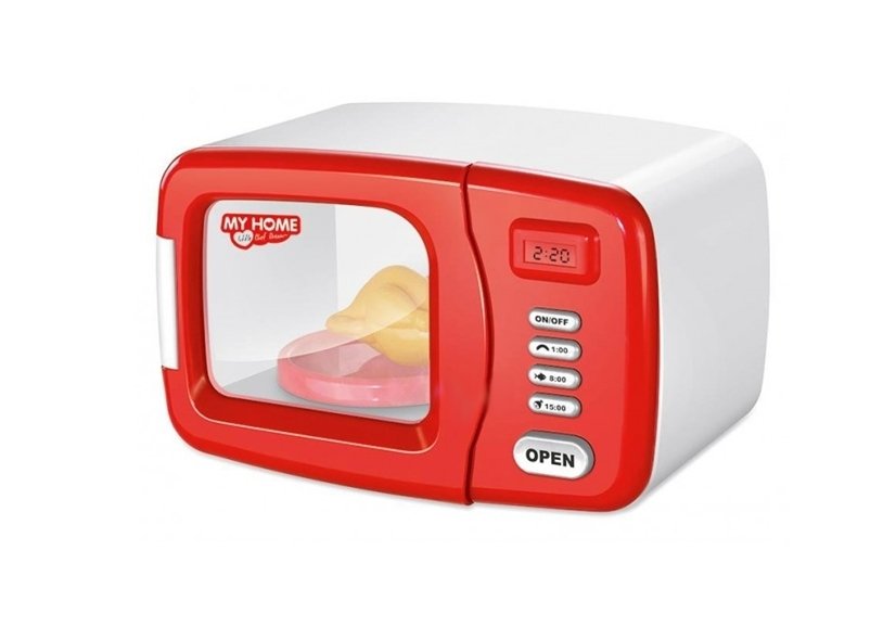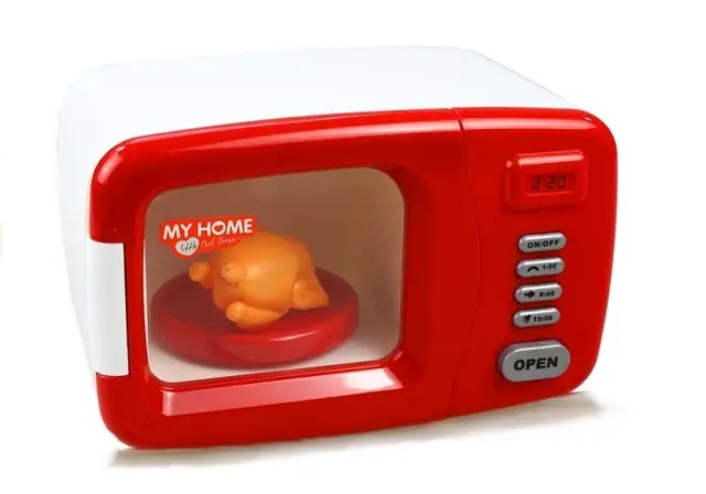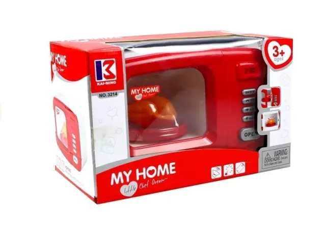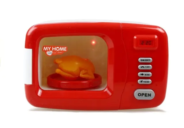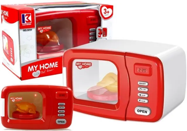 V notranjosti se prižge baza, notri se prižge tudi rdeča luč V notranjosti je okusen piščanec, ki ga lahko postrežete Dimenzije igrače: 20 cm x 13 cm x 13 cm Igrača napaja 2 AA bateriji (niso priloženi)