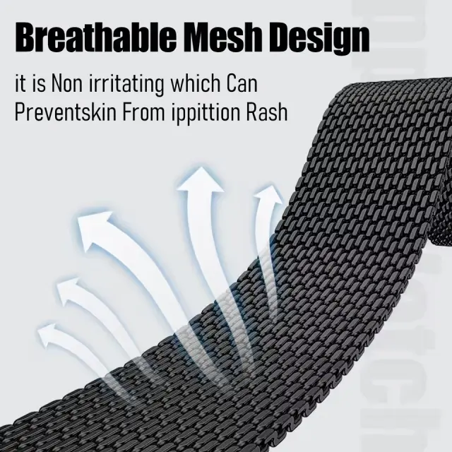 Nastavljivo Udobje: Zasnova milanese zanke omogoča neskončno prilagajanje, kar zagotavlja popolno prileganje za vsako velikost zapestja. Magnetna zaponka varno pritrdi zanko, preprečuje nenamerno zdrsavanje in omogoča enostavno prilagajanje čez dan. Tesno tkana mrežasta konstrukcija ni samo elegantna, ampak tudi zračna, kar zmanjšuje znoj in draženje, tudi med intenzivnimi aktivnostmi. Izkusite neprimerljivo udobje in varno prileganje s to natančno izdelano zanko za uro.