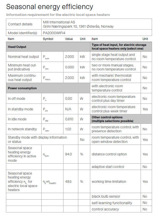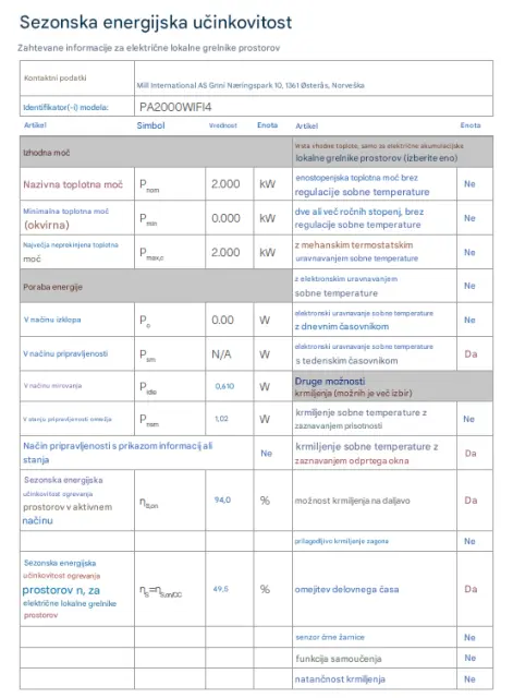 Panelni konvekcijski radiator MILL PA2000WIFI4, Wi-Fi 2000 W, bel, jeklo