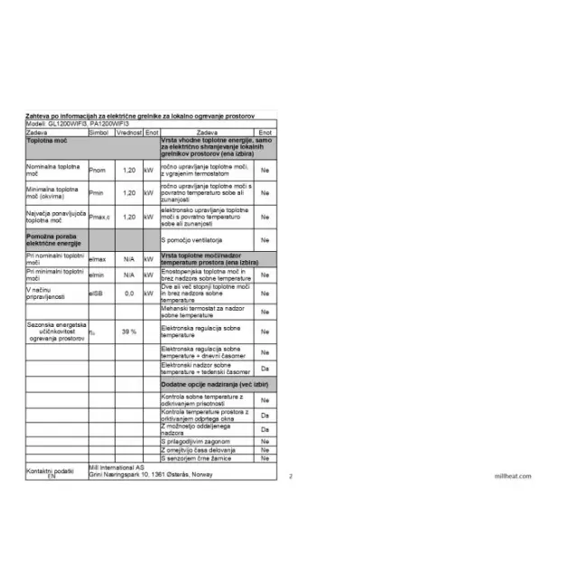 MILL panelni konvekcijski radiator Wi-Fi 1200W steklo GL1200WIFI3B