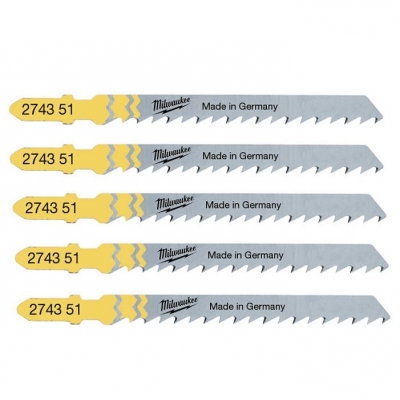 Milwaukee Blade za 75 mm kompleta v Jigsaw T101D - 5 psov. Za les, krožnik, PVC, čist rez