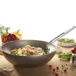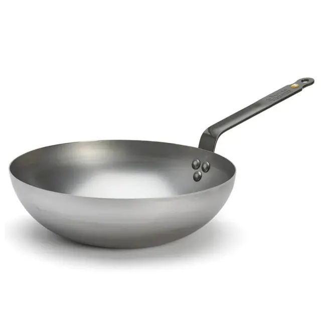 De Buyer vok je popolna wok-ponev za zdrav in hiter način kuhanja, idealna za naravno in dietetično kulinariko z majhno uporabo maščob. Ponev premera 24 cm se hitro segreje in toplota se enakomerno razporedi, kar ustvari Maillardovo reakcijo, hrana pa se v takšni ponvi odlično karamelizira. Ravno dno, ki meri 11,3 cm, je izredno stabilno. Ponve iz linije MINERAL B so izdelane iz visokokakovostnega železa, prevlečenega s čebeljim voskom, ki ustvari zaščitni premaz pred oksidacijo, hkrati pa je to tudi naravna obloga proti prijemanju živil pri prvi uporabi. Z vsako nadaljnjo uporabo ponve se izboljša lastnost naravnega nelepljivega sloja. Ponev lahko uporabljate na vseh kuhalnih površinah, vključno z indukcijo. Ne uporabljajte detergentov in ponve ne vstavljajte v pomivalni stroj. Po vsaki uporabi jo sperite z vročo vodo, jo osušite, nato pa jo rahlo premažite z oljem in shranite v suhem prostoru, da preprečite rjavenje. Ponev bo z uporabo postala temnejša, vendar z upoštevanjem pravil rokovanja z železno posodo bo del vaše kuhinjske posode še desetletja.