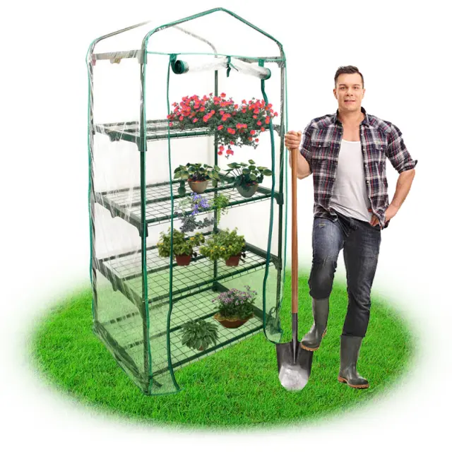 Mini balkonski vrtni rastlinjak s 4 policami, večnadstropna polica za zelenjavni vrt, herbarij