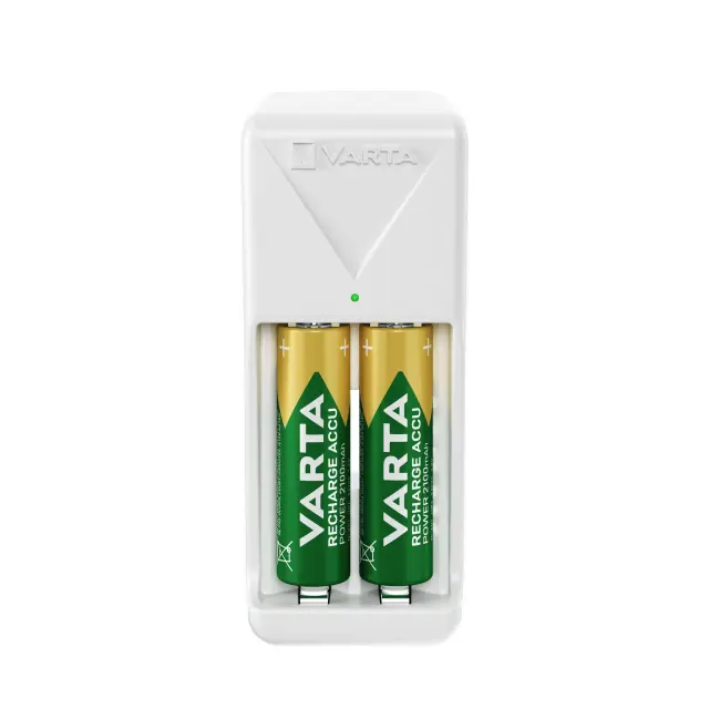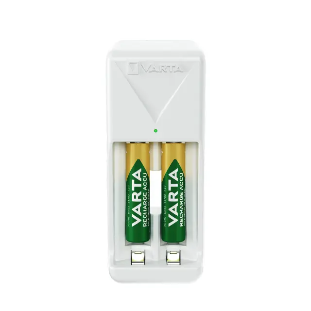 Mini polnilnik VARTA lahko napolni 2 AA ali AAA Ni-MH polnilni bateriji v samo 4,5 urah. Kompaktna in edinstvena zasnova VARTA s prijetno zeleno LED diodo za prikaz polnjenja. Globalna napetost 100–240 V za uporabo po vsem svetu in napredna varnostna tehnologija dopolnjujejo sodoben polnilnik in ga naredijo zanesljivega za vse energetske potrebe.