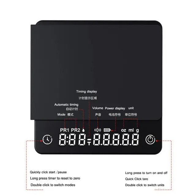 Mini Digitalna Kavna Tehtnica s Časovnikom, LED Zaslonom in USB Polnjenjem