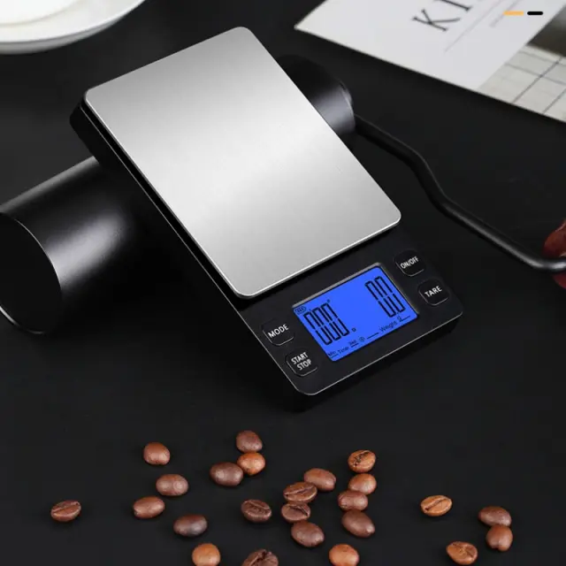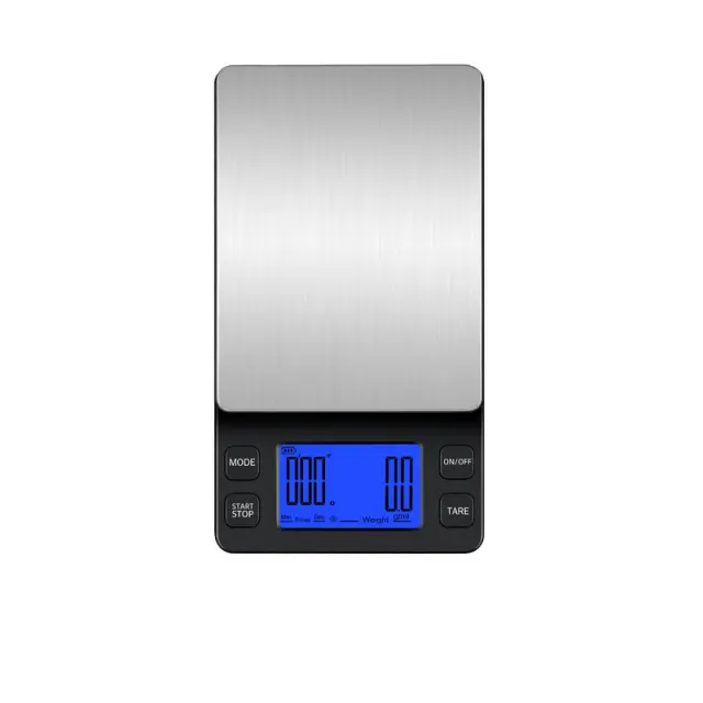 Robustna konstrukcija: Kavna tehtnica je izdelana iz visokokakovostnih plastičnih in kovinskih komponent, ki vzdržijo redno uporabo in so enostavne za čiščenje.