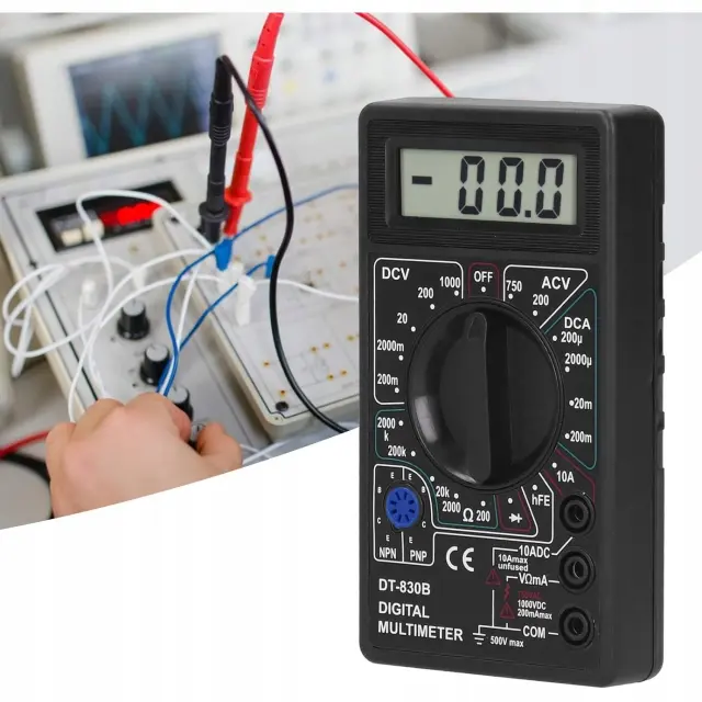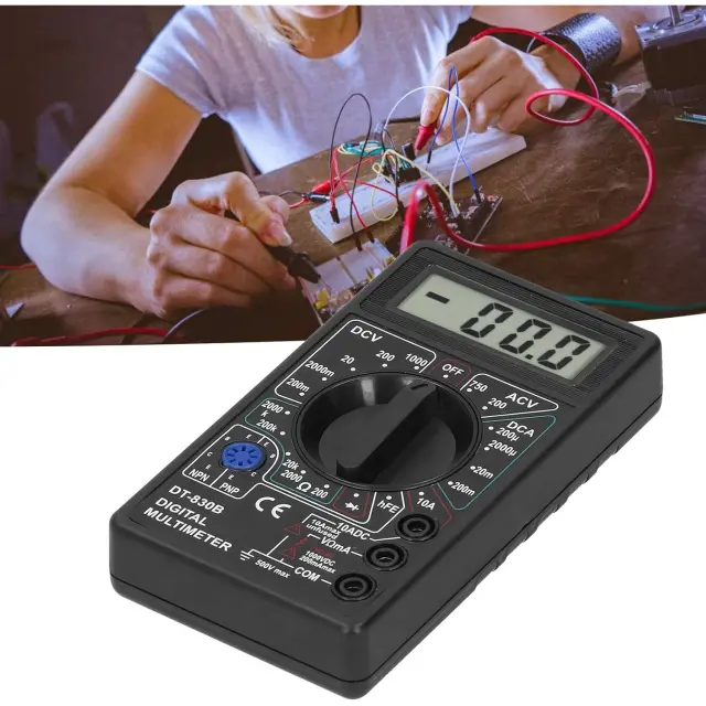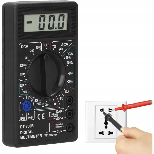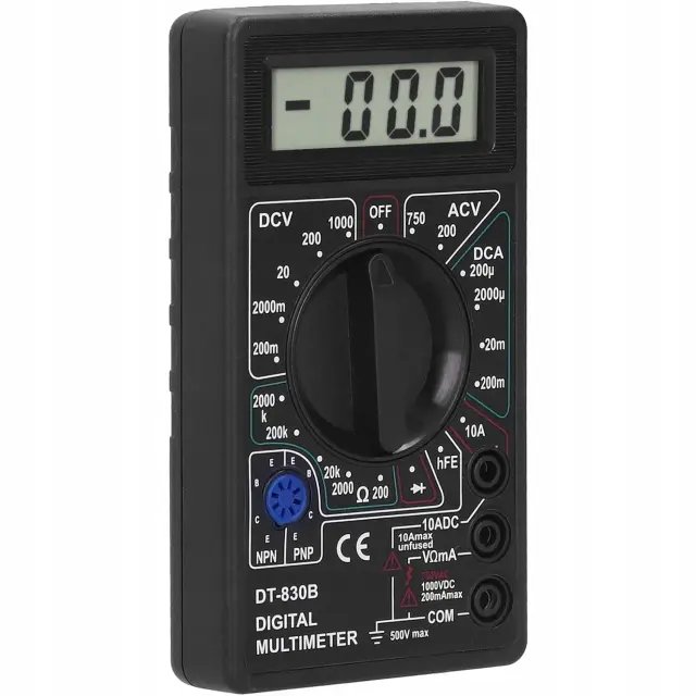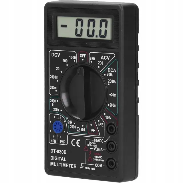 Rosfix Digitalni Multimeter DT-830B – LCD Zaslon, AC/DC Napetost, 10A, 2000kΩ, HFE | 126×70×28 mm, 9V