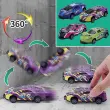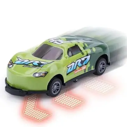 Igralni avtomobil za skakanje, ki se obrne, ko v nekaj trči. Naprava za izmetavanje se aktivira, da avto začne skakati in se vrteti.