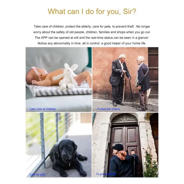 Enostavno brezžično spremljanje: Doživite brezskrbno spremljanje z našo mini WiFi kamero. Njena brezžična zasnova odpravlja zapletene namestitve, kar vam omogoča hitro nastavitev kjerkoli. Popolna za spremljanje vašega doma, pisarne ali hišnih ljubljenčkov, ta kamera zagotavlja brezhibno in priročno varnostno rešitev. Uživajte v ogledu v realnem času na vašem pametnem telefonu, kar zagotavlja, da ste vedno povezani s tem, kar je najpomembnejše. Kompaktna velikost jo naredi diskretno, se brez težav zlije v vsako okolje. Uporabite jo kot otroški monitor, kamero za hišne ljubljenčke ali splošno varnostno napravo za brezskrbnost. Brezžična zmogljivost zagotavlja prilagodljivost pri postavitvi, kar vam omogoča, da po potrebi prilagodite njeno lokacijo. Ta kamera je združljiva z različnimi napravami, kar ponuja vsestransko rešitev za spremljanje za vse vaše potrebe. Njen uporabniku prijazen vmesnik jo naredi dostopno vsem, ne glede na tehnično znanje. Lahka zasnova omogoča enostavno prenosljivost, zaradi česar je idealna za potovanja ali začasne nastavitve. S svojo zanesljivo zmogljivostjo in enostavno nastavitvijo je ta mini WiFi kamera odlična izbira za vse, ki iščejo priročno in učinkovito rešitev za spremljanje.