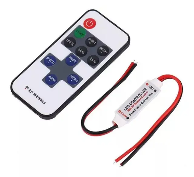 Predstavljamo vam MINI LED RF krmilnik 12V-24V daljinski upravljalnik 12A za LED trakove – popolno orodje za ustvarjanje prilagodljive in osupljive osvetlitve v vašem domu ali poslovnem prostoru. Ta inovativni krmilnik vam omogoča popoln nadzor nad barvo, svetlostjo in načinom osvetlitve vaših LED trakov, kar vam omogoča, da ustvarite pravo vzdušje in ambient v prostoru.