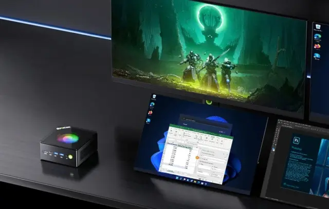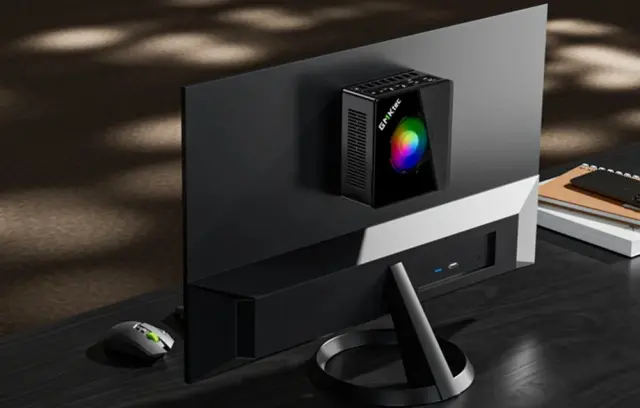 Ohišje GMKtec K11 meri približno 13,2 × 12,7 × 5,8 cm, zato zavzame zelo malo prostora in je enostavno prenosljivo. Odlično se obnese tudi na majhni pisalni mizi! Priložen ima tudi VESA nosilec, ki omogoča montažo naprave – na primer neposredno za monitor – kar prihrani dragocen prostor in poskrbi za urejen videz vaše delovne postaje.