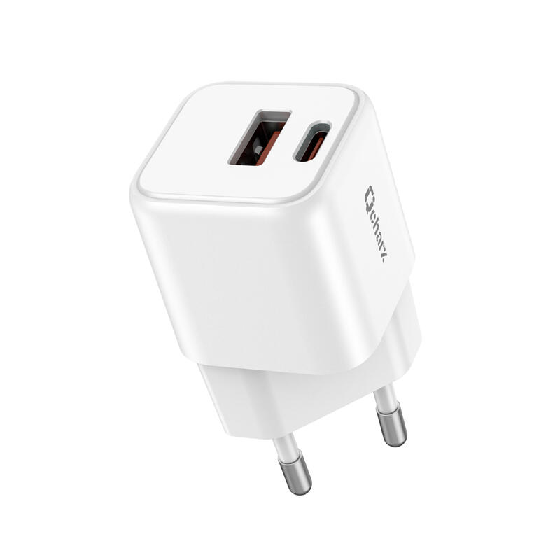 Mini polnilec Qcharx Zeus 3A 20W 1 vrata tipa C + 1 vrata USB, bela, prilagojena razdelilnikom