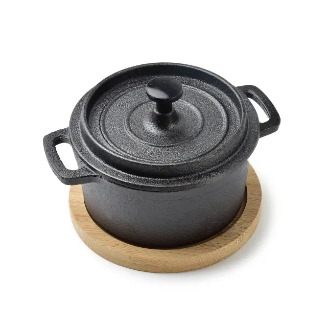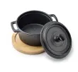 Lito železo omogoča enakomerno segrevanje in dobro zadrževanje toplote, kar pomaga pri stabilnih rezultatih pri pečenju in dušenju ter pri ohranjanju temperature jedi med postrežbo. Priložen pokrov pomaga zadržati sočnost in aromo, ergonomska ročaja pa olajšata prenašanje. V kompletu je tudi bambusov podstavek za varno in urejeno serviranje.