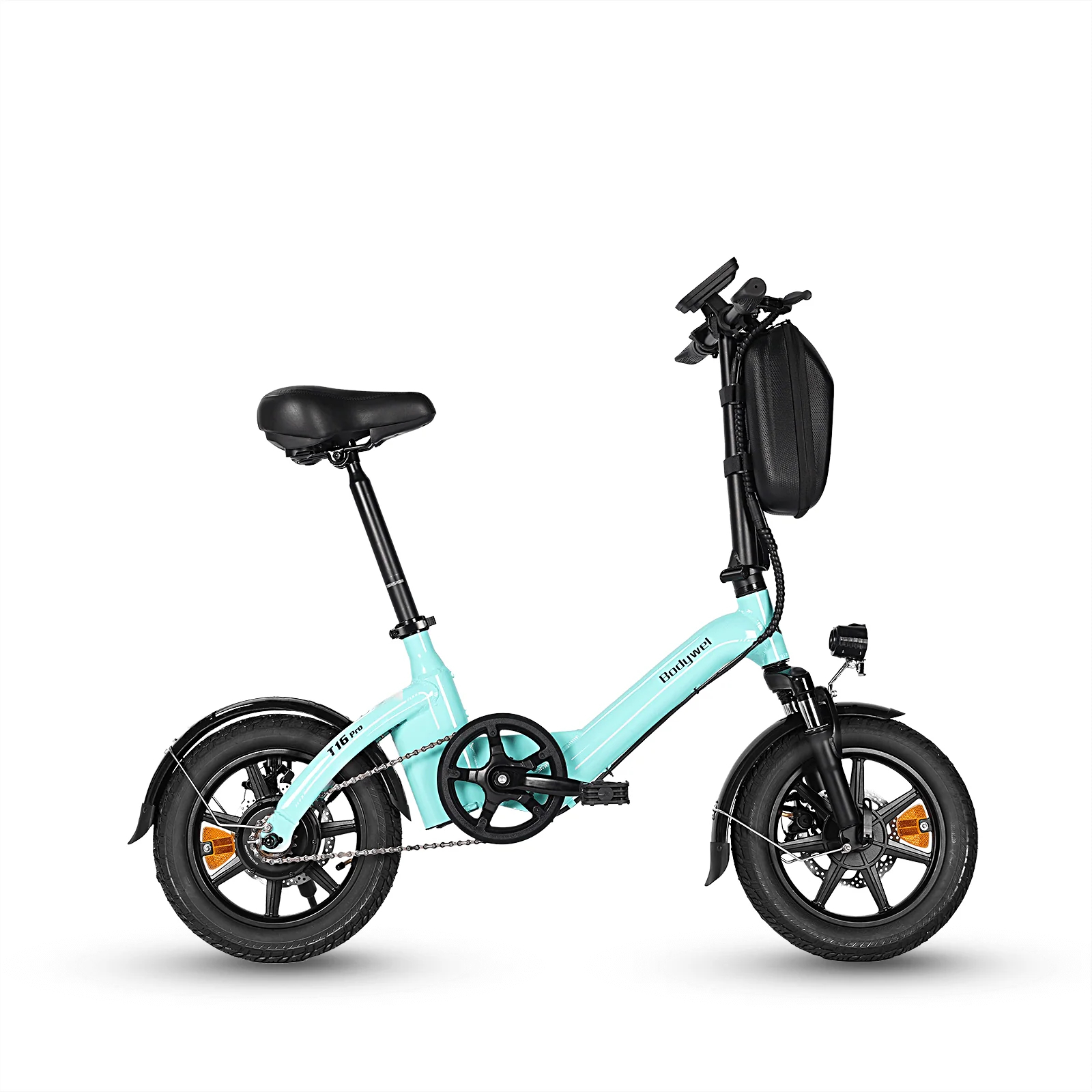 Mini zložljivo električno kolo Bodywel T16 Pro, 14", 250 W 36 V 7,8 Ah, za vožnjo na delo, modra