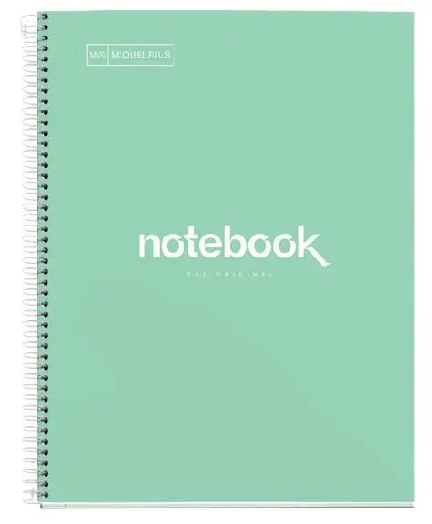 - zvezek A4, 120-listni, 90g papir - črtast, razmik med črtami 7 mm - robovi papirja v petih različih živih barvah, vsake barve 24 listov - spiralna vezava - kartonski ovitek s svetlečim plastificiranim potiskanim papirjem - posebej neprosojen papir, mikro-perforiran, s 4 luknjami za vstavljanje v mape - na zvezku je odstranljiva nalepka z opisom - certifikat FSC MiquelRius je družinsko podjetje, ustanovljeno leta 1839 v Barceloni, Španiji. Izdelujejo papirne izdelke tako za profesionalne uporabnike kot tudi za študente. Podjetje slovi po visoki kakovosti svojih proizvodov. https://www.youtube.com/watch?v=PipEQCTEhsU