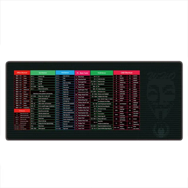 Priročen vodnik po bližnjicah: S celovitim prikazom bližnjic na tipkovnici v angleškem jeziku ta podloga za miško služi kot priročen vodnik, ki povečuje vašo produktivnost s prihrankom časa in truda. Nič več iskanja bližnjic na spletu ali v menijih!