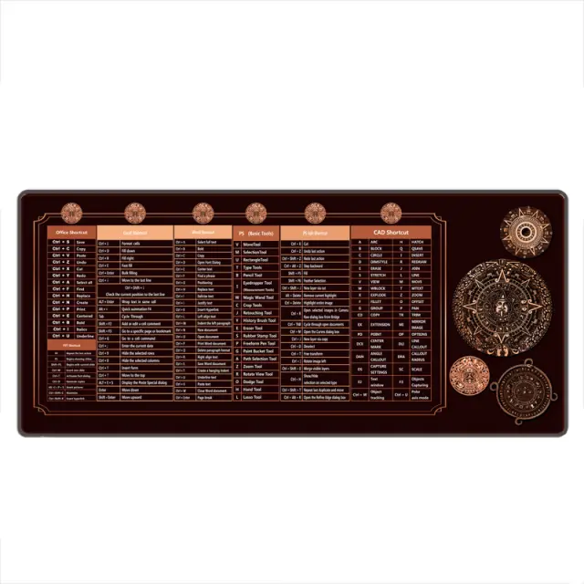 Priročen vodnik po bližnjicah: S celovitim prikazom bližnjic na tipkovnici v angleškem jeziku ta podloga za miško služi kot priročen vodnik, ki povečuje vašo produktivnost s prihrankom časa in truda. Nič več iskanja bližnjic na spletu ali v menijih!