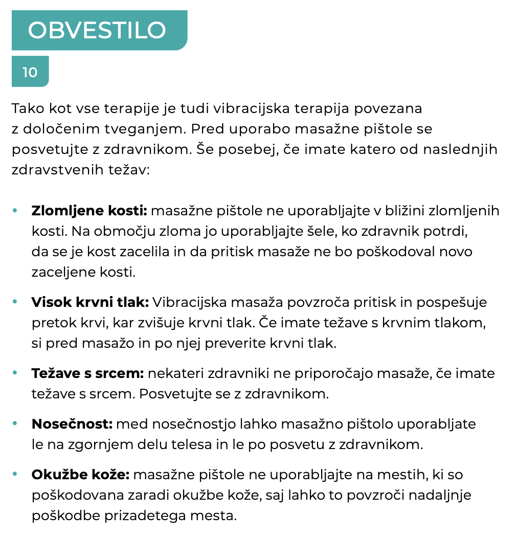 Ta masažni aparat je primeren za profesionalno in zasebno uporabo. Masažne pištole uporabljajo zdravniki, kiropraktiki, trenerji in fizioterapevti za različne fizične tretmaje.