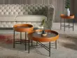 Miza iz konjakaste kravje kože 2058 Angel Cerdá S.L. Moderno oblikovana okrogla mizica z 0,5 mm debelo ploščo iz naravnega orehovega furnirja in elegantnim okroglim obročem, oblazinjenim z recikliranim govejim usnjem v barvi konjaka, ki ji doda izviren in prepoznaven pridih. Zaradi črno epoksi lakiranih jeklenih nog je popolna mizica za kavo, ki v vaši dnevni sobi ustvari prefinjen in hkrati izviren videz. - STIL: Ta kavna mizica s sodobnim dizajnom je idealna za kombiniranje z najnovejšimi trendi v dekoraciji. - Vsestranska oblika: Zaradi svoje sodobne oblike je to vsestranska stranska mizica, ki bo postala glavni junak vaših prostorov. - KAKOVOST: Vse naše mizice so izdelane iz najkakovostnejših materialov, kar zagotavlja trajno in funkcionalno pohištvo. - DEKORACIJA IN UDOBJE: Ta izvirna okrogla mizica iz oreha z oblazinjenjem iz usnja in črnega jekla je popolna možnost, da svojemu domu dodate drugačen in prefinjen pridih, ki ga iščete. - MERE: Zaradi svojih mer in sloga bo ta moderna mizica idealen kos, ki bo popestril vašo dnevno sobo, hkrati pa bo tudi praktičen element v vašem vsakdanjem življenju
