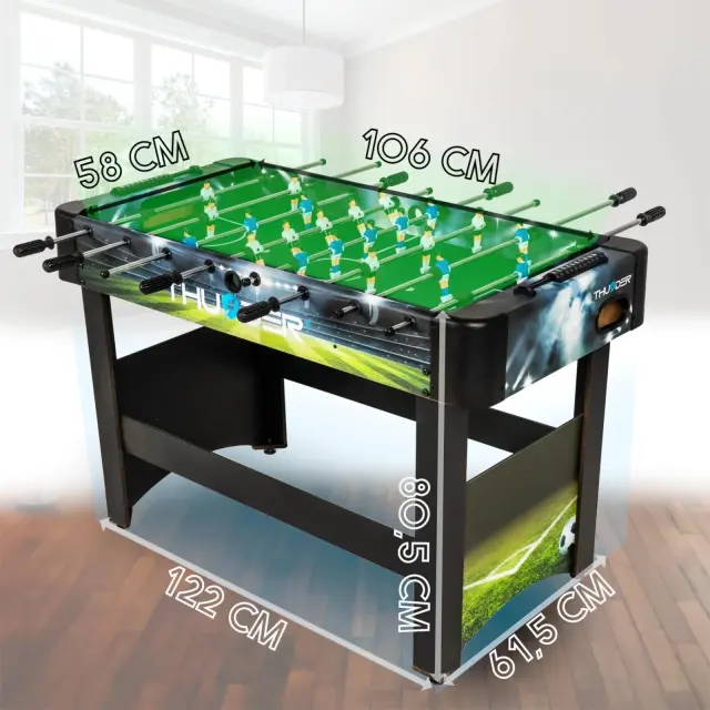 Miza za namizni nogomet– stabilna miza 122×61,5×80,5 cm, MDF, 2 žogici THUNDER® FROST-4FT