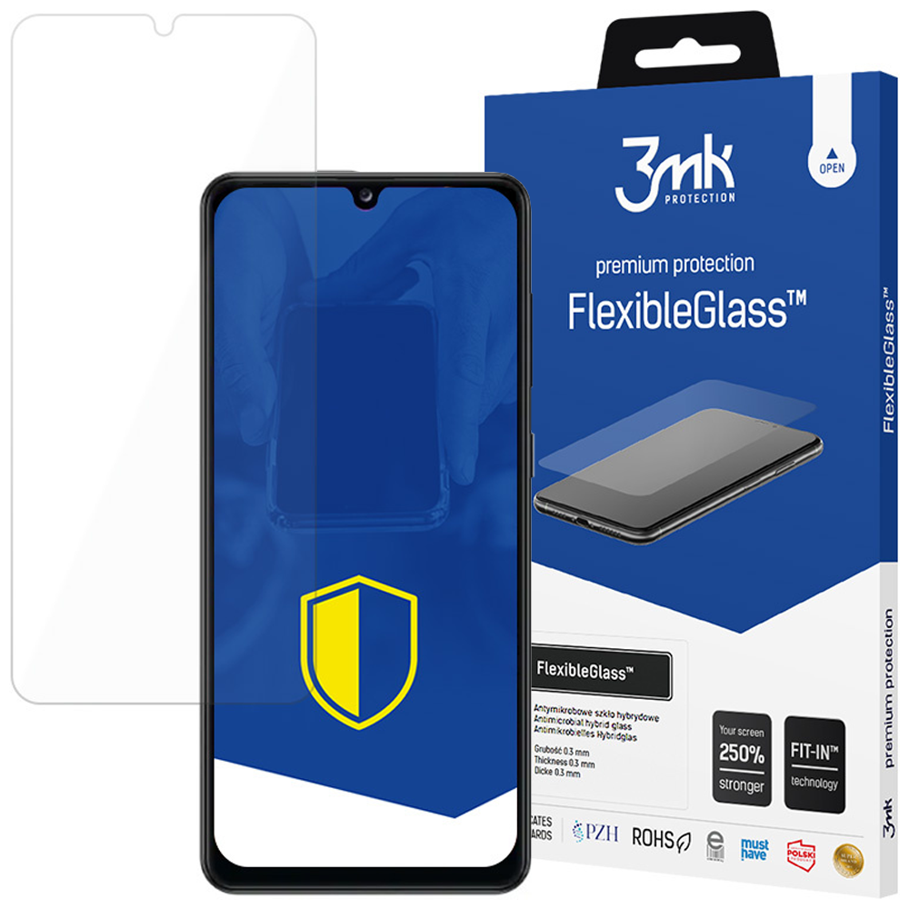 FlexibleGlass je nova, boljša formula za zaščito zaslona. Je izjemno tanek - skoraj neviden, ojača zaslon za 250% in je odporen na praske. Za varnost uporabnika in telefona poskrbi antibakterijski premaz. Steklo je zasnovano tako, da je skoraj nevidno in ohranja prvotni videz pametnega telefona z debelino manj kot pol milimetra.
