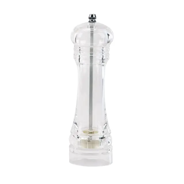 Ilsa mlinček za poper/sol s keramičnim mlinom klasične oblike je izdelan iz odporne prozorne plastike. Nabrušena rezila se le s težavo obrabijo, kar mlinčkom zagotavlja dolgotrajno ostrino in obstojnost. Visokokakovostni mlinski kamni omogočajo, da brez težav zdrobite poprova zrna in solne kristale ter iz njih izvlečete vso aromo. Zaradi odsotnosti kovine se pri tovrstnih mlinčkih ne more zgoditi, da bi mehanizem zarjavel, posledično ne prihaja do neprijetnih vonjav, zmeta sol in poper pa ohranjata vedno svežo aromo in okus. S privijačnim gumbom na vrhu mlinčka lahko prilagajate debelino mletja. Mlinček bo brezhibno deloval s pravilno uporabo – zato vam priporočamo, da ga ne perete z vodo in ga ne postavljate v pomivalni stroj. Priporočamo vam, da z njim ne meljete nad paro, tudi sicer ga je potrebno hraniti na suhem, stran od vlage in ga čistiti zgolj s suhimi krpami. Če je mlinček prazen, vam priporočamo, da se izognete mletju, saj se mehanizem lahko poškoduje.