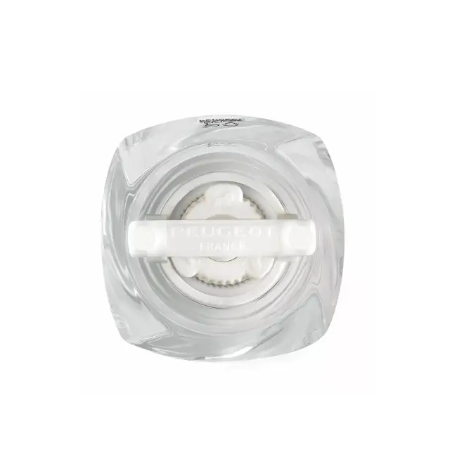 Mlinček Molene v beli barvi, je zasnovan za mletje morske soli. Opremljen je s patentiranim mehanizmom za dosledno mletje brez nevarnosti blokade, tudi pri zelo mokri ali grudasti soli. Skrivnost je v keramičnem Peugeotovem mehanizmu z doživljenjsko garancijo, ki meša sol, jo prezračuje, zagotavlja stalen pretok in ni pod vplivom korozije. Ta inovacija je združena z elegantnim dizajnom z belo glavo in prozornim telesom iz akrila, ki omogoča stalen vpogled v vsebino. Vijak oz. gumb služi za nastavitev stopnje mletja - močneje kot je gumb zatisnjen, bolj fino je mleta sol. Združite mlinček Molene z ujemajočim se mlinčkom za poper in ustvarite popoln duo!